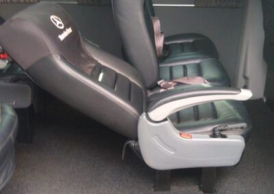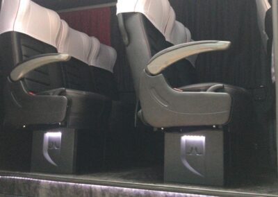 - Bancos confortáveis com apoio de braço e ótimo espaço entre fileiras